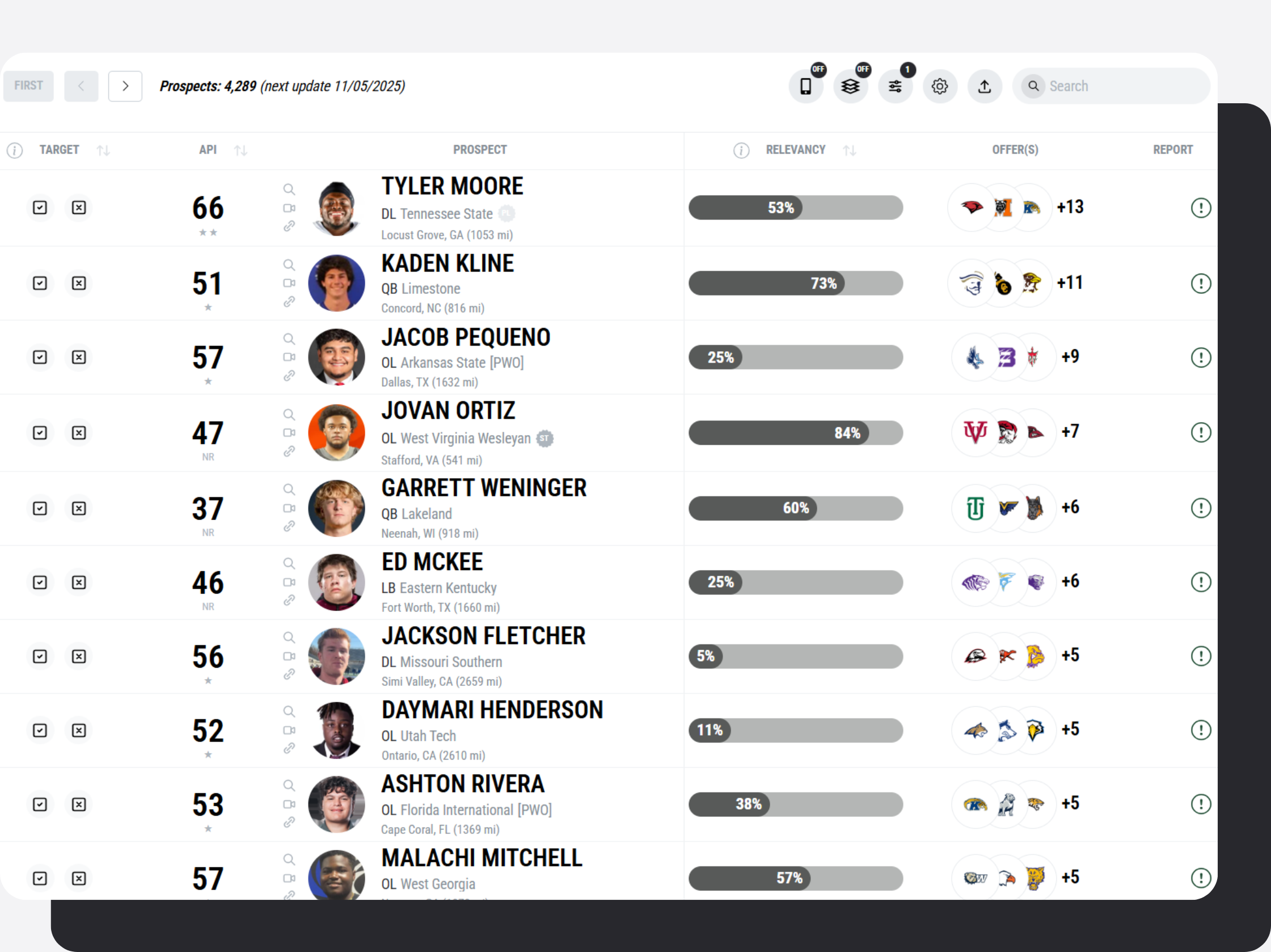 Get you and your staff access to 150,000+ prospects along with unmatched recruiting data, tools, and features.