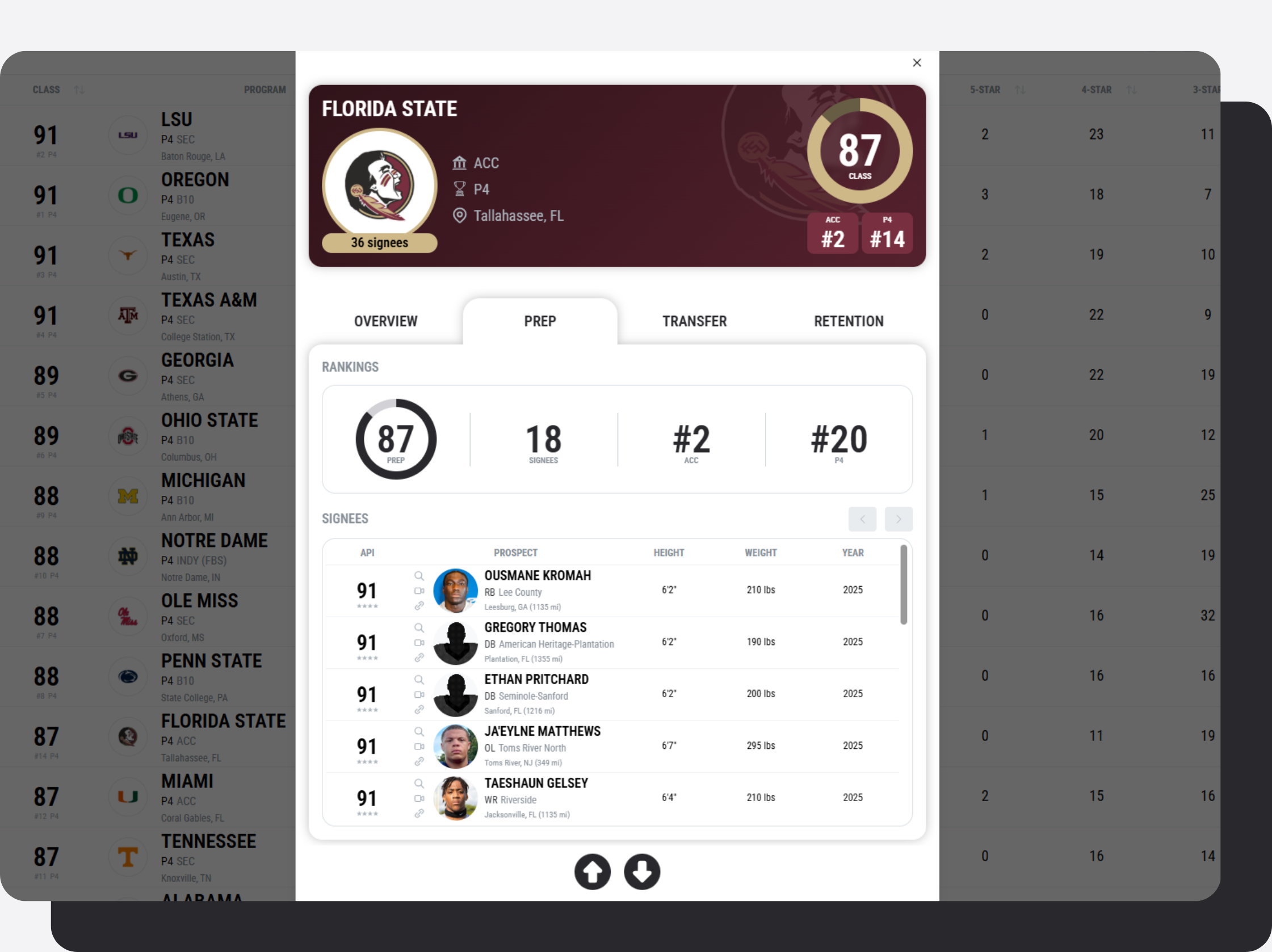 Be an expert on your team and all of college football with AthLinkd’s class rankings and recruitment tracking platform.