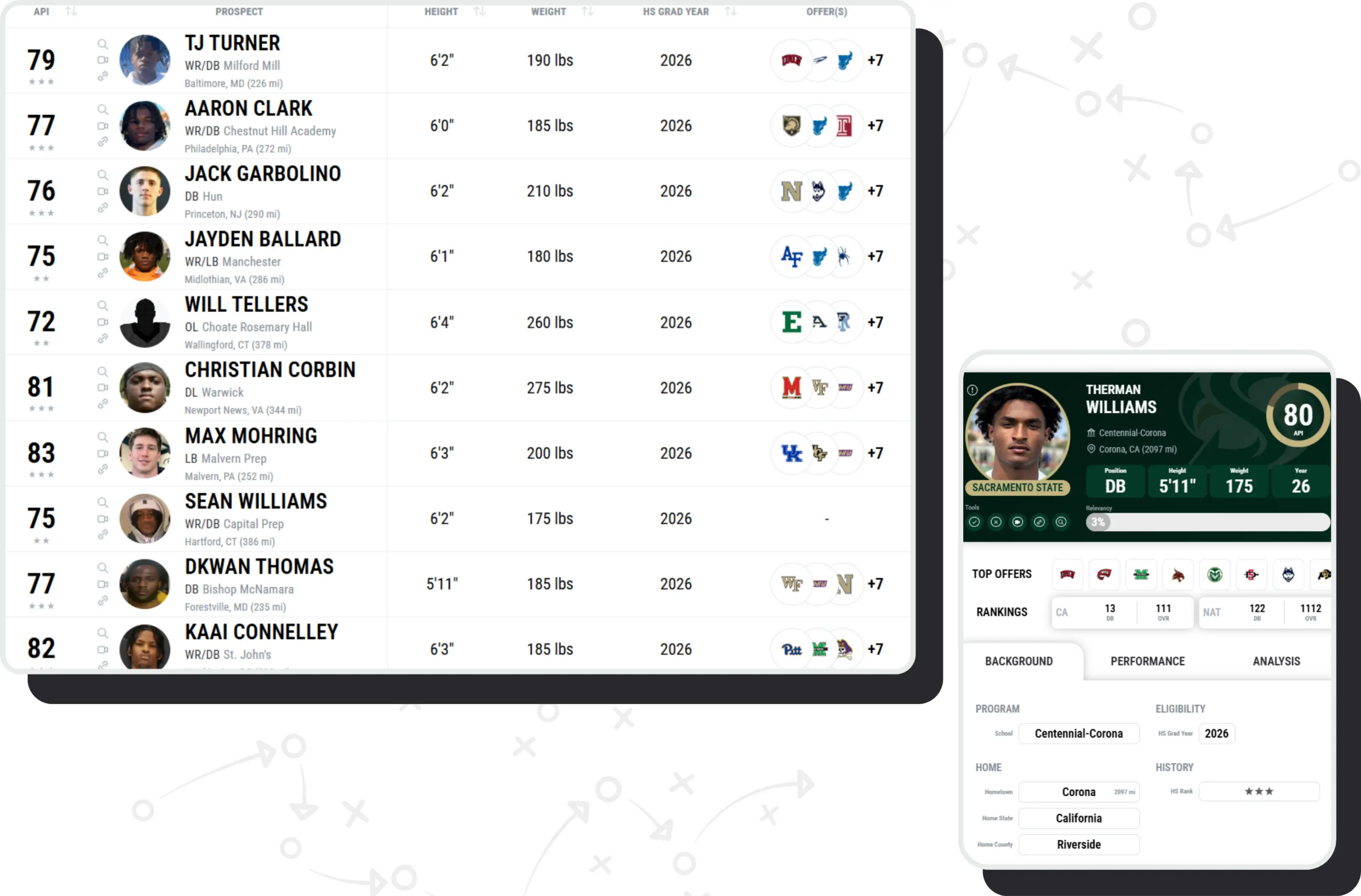 Access to updated data for high school, transfer portal, JUCO, post-grad, and international prospects.